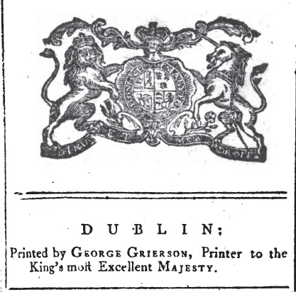 She gave up the midwifery when she met George Grierson, a publisher, and became an editor for him of classical authors – Virgil, Terence and Tacitus – for his series of pocket editions, her work meeting the approval of Swift himself. She married Grierson in 1726, after the death of his first wife, and pregnant with her first child, who tragically died because of the carelessness of his nurse. (Two daughters also died in infancy, and another son survived.) It was on the basis of her as well as her husband’s skill that the Griersons were granted the patent of King’s Printer in Ireland: the ODNB quotes their petition: