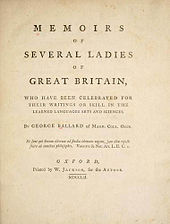 I’ve already mentioned the treasures to be found in the three volumes of John Walker’s Letters Written by Eminent Persons in the Seventeenth and Eighteenth Centuries (1813). In Volume 2 part 1, mention is made (in a 1749 letter) of a forthcoming work: George Ballard’s Memoirs of Several Ladies of Great Britain, who have been celebrated for their writings, or skill in the learned Languages, Arts, and Sciences, first published at Oxford in 1752, and reissued in 1775.