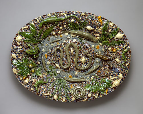 but were they themselves influenced by the grotesque ceramics of the ‘Palissy’ pottery developed by A.E. Jones and Sons of Stoke on Trent in the 1850s, and itself named after the pioneering French potter and Protestant martyr of the sixteenth century?