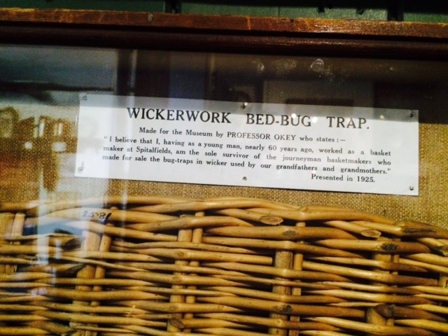 But, returning from the man to his art, how does a wickerwork bed-bug trap function? Luckily, the online resource ‘Cornucopia’ lists it among the treasures of the museum, with the note: ‘This ingenious wicker-work trap was used to catch bed bugs which infested beds in the past. It would be placed behind the pillow, encouraging the bugs to crawl inside. Before you went to sleep, your maid [!!??] would remove the trap, take it outside and shake.’