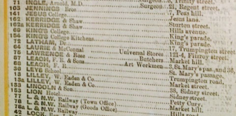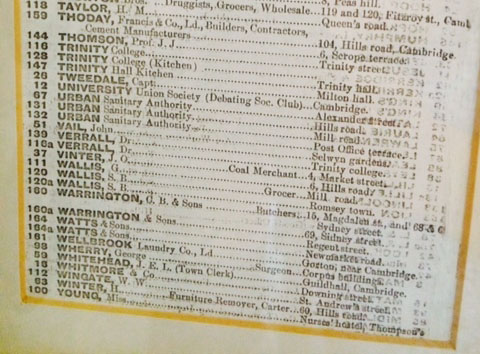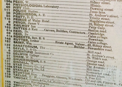 As you can see below, there are many more intriguing entries, especially of doctors or surgeons. The whole list gives a fascinating insight into social and economic life in Cambridge at the end of the nineteenth century.