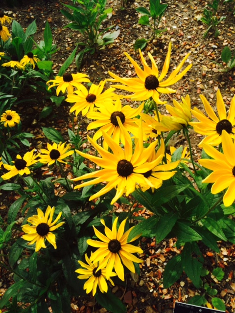 I can just about tell my Echinaceas from my Heleniums, but I find Heleniums versus Rudbeckias more tricky – and I am afraid I was far too busy taking photographs and watching the bees, hoverflies and butterflies which flock to these generously open flowers to pay sufficient attention to the labels. So here is a selection of stunning variations on the basic composite or star-shaped flower.
