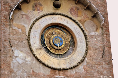 We were staying in a tiny apartment right in the pedestrianised centre, and our deal included breakfast 50 yards away in Piazza Erbe, at a café founded in 1881 and understandably popular with the locals: the coffee and pastries are wonderful, as is the view of the Mantuans going about their daily business, and the clock tower with its extraordinary (1473) clock, which indicates, as well as mundane stuff like the time, the lunar phases, the days suitable for the various working activities and, finally, the sun’s position in the zodiac signs. Him Indoors discovered a poll saying that Mantuans consider themselves the happiest people in Italy, and the city is supposed also to be the food capital (though Bologna might argue about this).