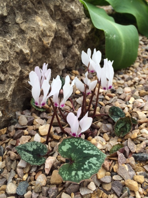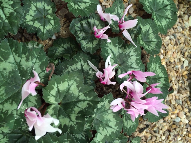A huge number of ‘florists’’ varieties have also emerged, with larger leaves and flowers, and a greater variety of colours (and variegations) within the white to deep purplish red spectrum of the genus. These are sold as indoor plants in autumn and winter, but in my opinion, they can’t match the miraculous delicacy of their ancestors.