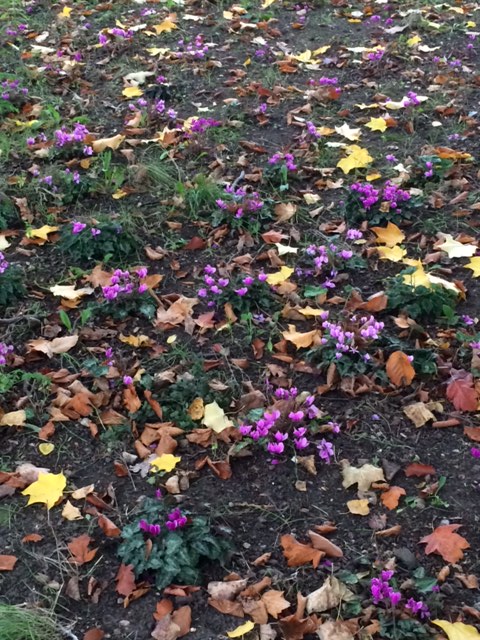 No difficulty in choice this month: the cyclamen, in all its varieties, is the outstanding plant of October. If asked to choose my own favourite flowering plant, I’d be torn between the cyclamen or the clematis (in all its varieties – except those ghastly over-bred double things), but at this time of year, there’s no question.