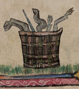 Smyting things to pecys, from the Luttrell Psalter (c.1340). (Credit: the British Library.)