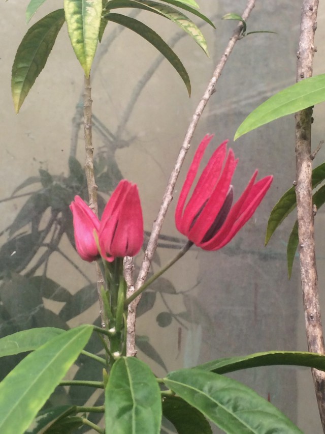 I was particularly taken with three plants: the Magnolia figo, or banana shrub, so called because of its banana-like flowers; the Pavonia multiflora in a glass-house, and the gorgeous Loropetalum chinense.