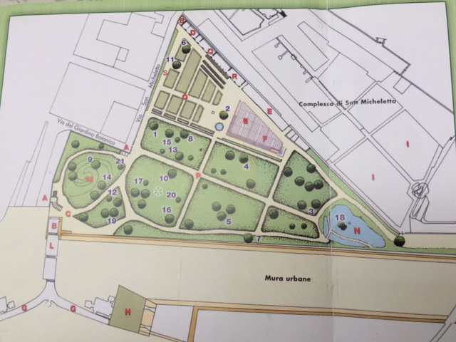 Map of the Botanic Garden, tucked in under the ramparts (Mura urbane).