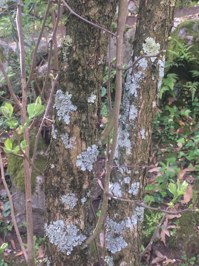 Crataegus mollis (downy hawthorn), with added lichen, in Lucca.