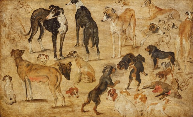 A sheet of oil sketches of dogs and a dead boar by Jan Brueghel I. (Credit: Kunsthistorisches Museum, Vienna)