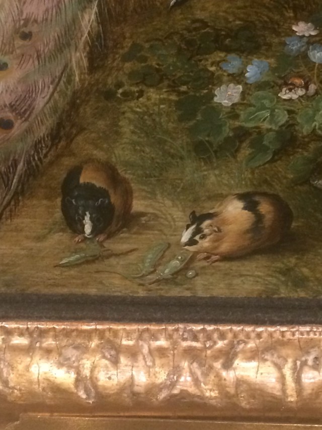 Prosaically, it seems most likely that, having painted them once in the early 1600s, Brueghel continued to repurpose the images – as he did with many others, notably the big cats and the magnificent grey horse. I wonder if the guinea pigs feature in any of his sheets of preparatory sketches?