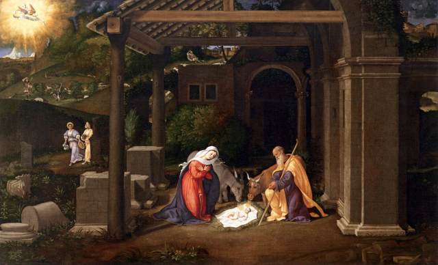 Giorgione shows the Adoration of the Shepherds taking place in the countryside. (Credit: National Gallery of Art, Washington)
