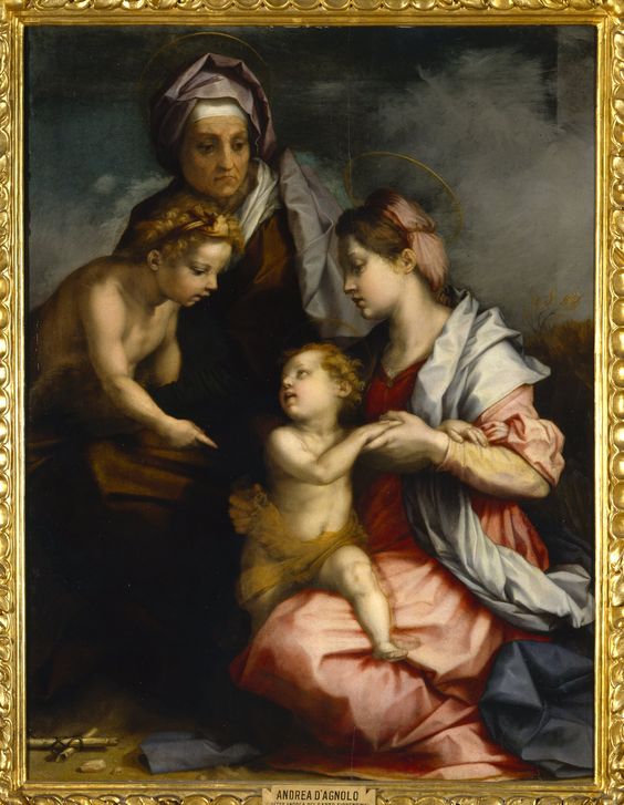 The painting by Giorgio Vasari (above), in Dulwich Picture Gallery, is a copy, with Joseph added, of Andre del Sarto’s Holy Family in the Palazzo Pitti, Florence (below).