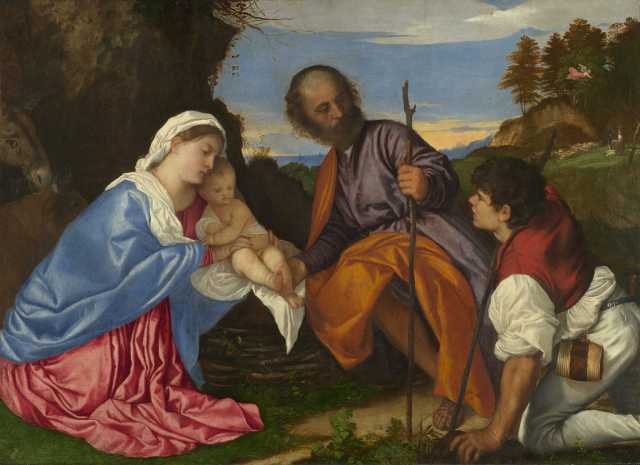 Finally, Titian’s Holy Family with a Shepherd, of which the mid-Victorian critic and painter George Foggo remarked: ‘The virgin mother is middle-aged and devoid of all spirituality … A few wrinkles in Joseph’s forehead would have been a great improvement.’ (Credit: the National Gallery)