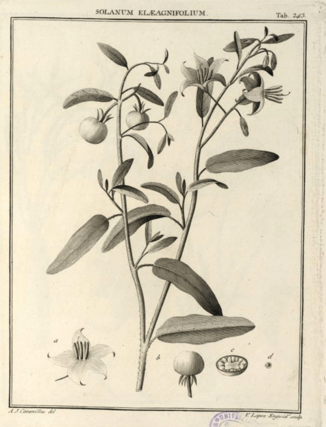The reason for Cavanilles’ interest is that Solanum elaeagnifolium is, like the other two, a plant native to the south-west of the United States and Mexico. Unlike the other two, however, it has not been seized upon by hybridists to produce endless garden varieties, but is notorious as an invasive pest everywhere in Europe, America, Africa and Asia where it has spread.