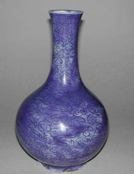 A cobalt blue bottle with cloud patterns (c.1850–1900), donated by W.M. Tapp in 1926. (Credit: the Fitzwilliam Museum)