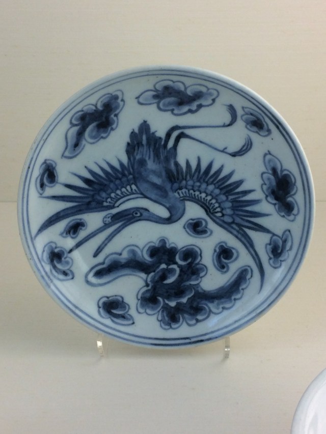 Nineteenth-century dish showing a crane among clouds, from the Gompertz Gift (1984).