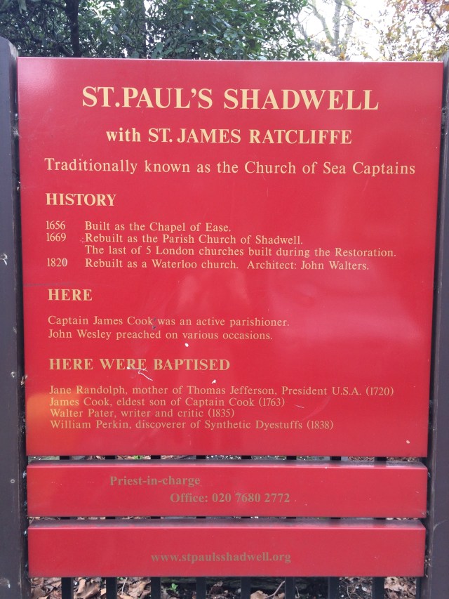 Anyway, St Paul’s had previously been a chapel-of-ease, built in 1656 by the Honourable East India Company, for St Dunstan’s, Stepney, but a new parish of Shadwell was created by the bishop of London in 1670. (In fact, the growth of the East End from the later seventeenth century is marked by the number of subdivisions of the parish of St Dunstan’s, which can be seen in this helpful chart.)