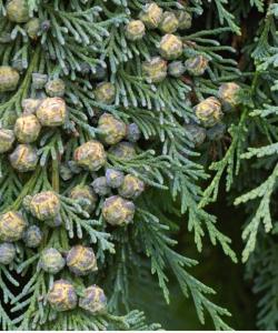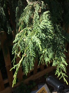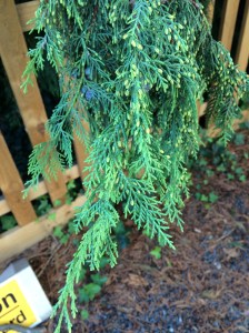 The Lawson cypress, showing the green-coloured twigs.