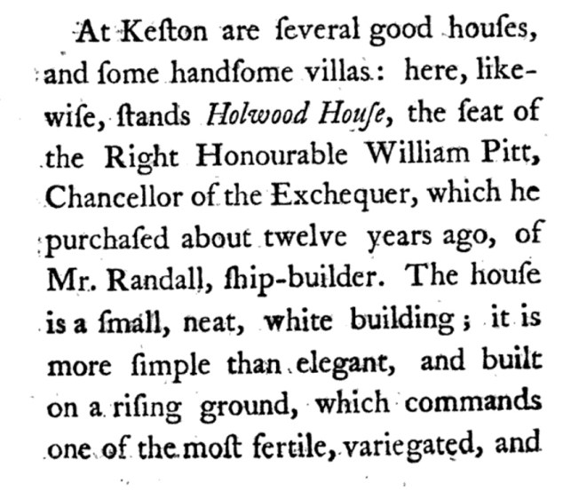 He says of Holwood House, near Keston, in the now London Borough of Bromley: