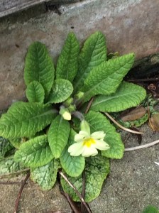 The primroses are out in splendid fashion this year – two severe blasts of snow appear not to have cramped their style (let’s see what the third, allegedly due later this week, will do). Quintessentially plants of woodland and hedgerow, they seem to be remarkable adaptable, and will grown anywhere that isn’t too dry: which means that the damp problem in my back wall must be worse that I thought, as one is flourishing in the cement just under the doorstep…