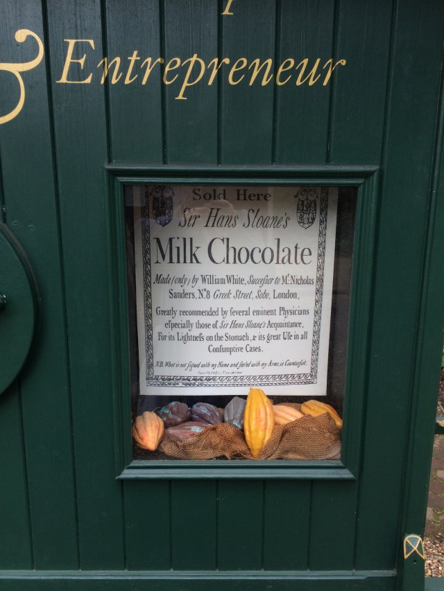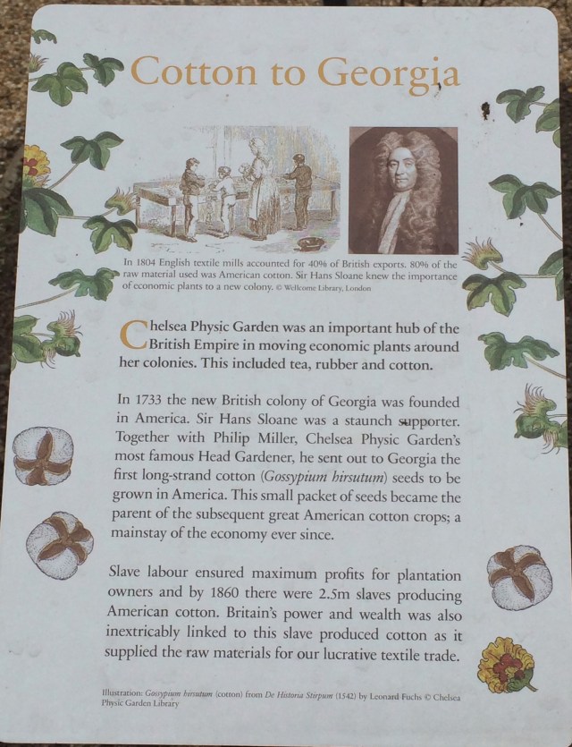 There are frequent reminders of the importance of the Miller and the Physic Garden to a burgeoning world economy: not least in the introduction of cotton seeds to North America, and Sloane’s ‘invention’ of chocolate – both of which of course required the hard labour by slaves at which Sloane himself, in his brief stay in Jamaica in the 1680s, had shown himself unmoved.