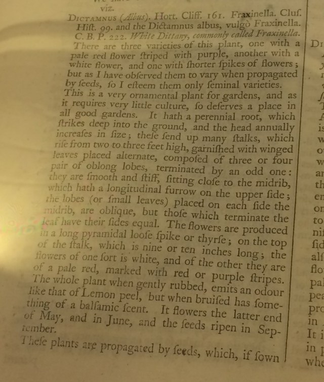 Part of t he entry for dittany (Dictamnus albus) in the eighth edition of the Gardener’s Dictionary.