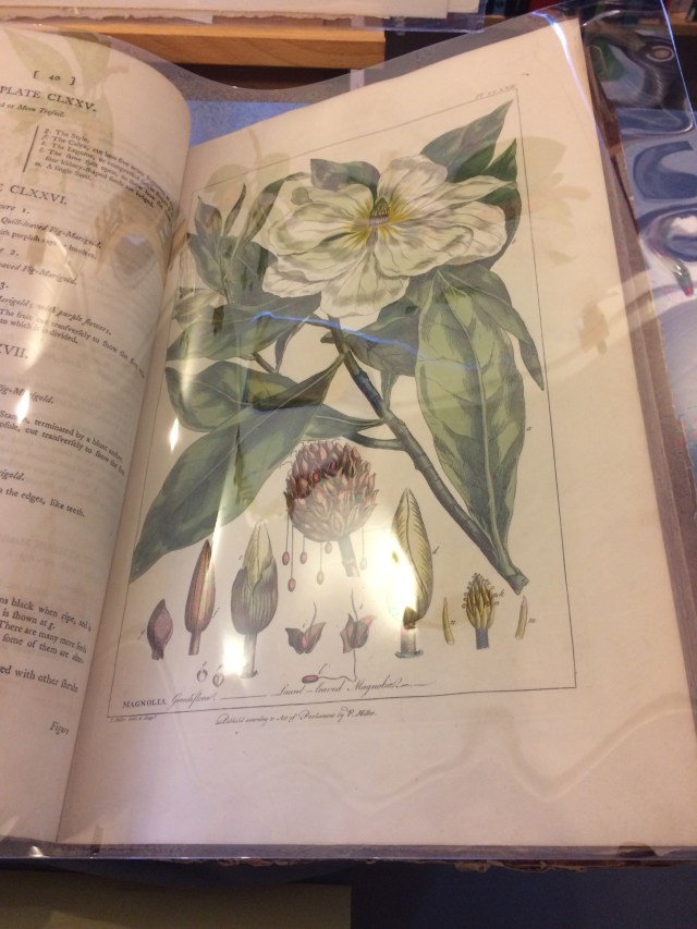 The eighth edition (1768) is perhaps the most important, since in it Miller finally adopted Linnean taxonomy – the two men had met at Chelsea in 1736, but according to a caption in the exhibition, ‘Miller made it clear that he was sceptical of this new system and [they] did not part on he best of terms’.