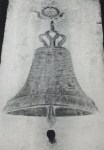 Avery gives a description of the moulding and casting processes, noting that the final laborious cleaning, polishing and tuning of the bell was done by ‘workshop assistants’. Tuning involved chipping off small pieces of the metal on the inside the bell with a special hammer, using a violin or pitch-pipe (or another bell) as a guide to the required tone. Is this what the woman on the left of the picture is doing, while the one on the right is cleaning and polishing?