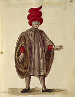 I suspect that, since Giovanni Grevembroch (1731–1807) was also known as Jan van Grevenbroek, his antecedents were Dutch or Flemish rather than German. The title of his work on costumes was Gli habiti de Veneziani di quasi ogni età con diligenza raccolti a dipinti nel secolo XVIII (‘The costumes of the Venetians of almost every age, diligently gathered and painted in the eighteenth century’), indicating that he was not merely depicting his contemporaries, but looking at the paintings and prints of earlier centuries as sources for much older fashions and indeed personalities.