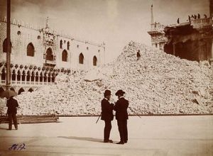 The famous photograph of the collapsed tower – the only casualty was, sadly, the caretaker’s cat.