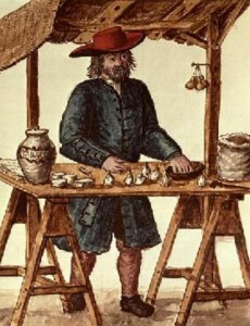 Some of the most interesting (in my opinion) show the ordinary Venetians of Grevemboch’s own time going about their business – the fishmonger, the tobacconist, the tattooist, two mountebanks sawing a resigned-looking old spinster in half.