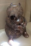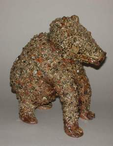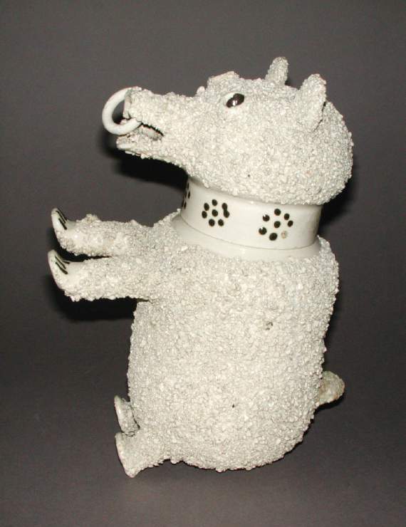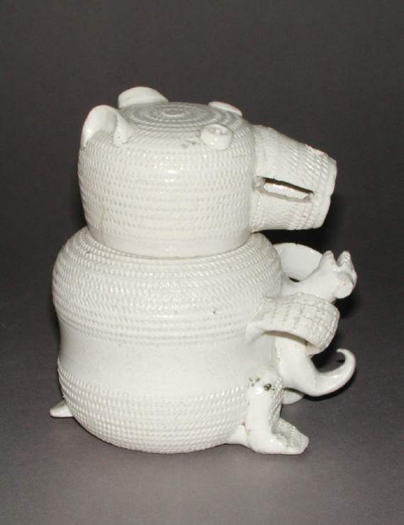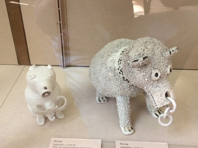 The most bizarre is from Staffordshire, a white stoneware piece which is almost a deconstruction of bear features, with his shaggy fur indicated by rows of little indentations, a crude decoration familiar from Neolithic times onwards.