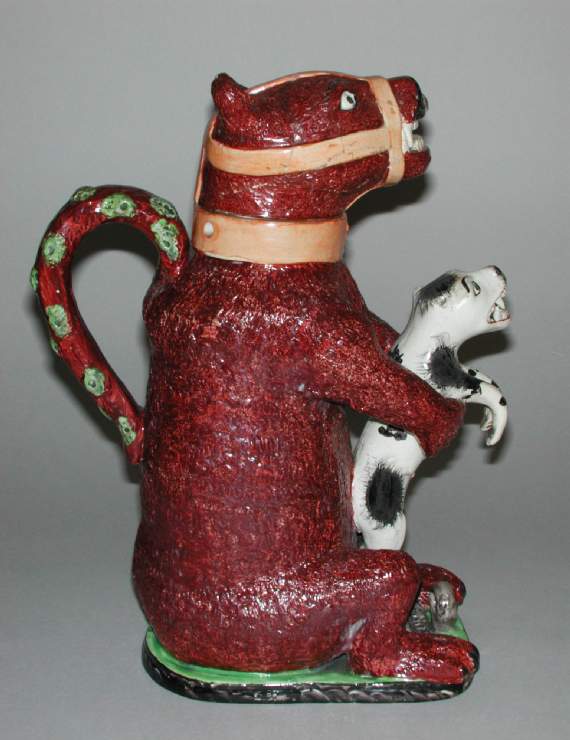 However, enthusiasm for bear-baiting seems to have declined gradually throughout the eighteenth century – precisely during the period when the bear jugs seem to have been most popular. (There are still plenty of depictions, but they suggest ad hoc gatherings in barns rather than regular stagings in purpose-built arenas.)