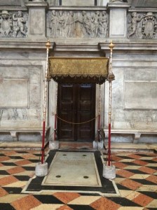 We dropped into San Salvador to see Titian’s matchless ‘Annunciation’, and discovered that a canopy has been placed over the grave-stone of Caterina Corner.