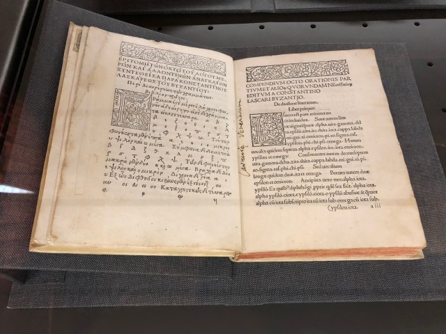 Constantinus Lascaris’s Greek grammar, printed by Aldus Manutius in 1494.