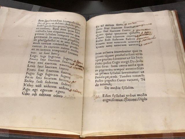 The Libellus de ultimis syllabis et Centimetrum of Honoratus Servius Maurus, 1476. The wide margins are presumably intended for annotations: here the earnest student of Latin has added the Italian equivalents of some of the Latin verbs whose principle parts are given.