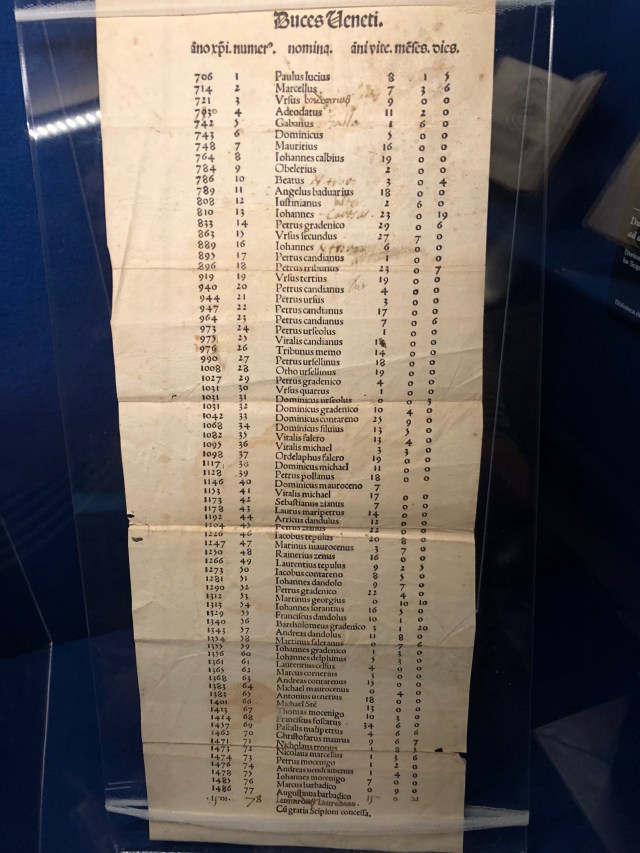 This list of the Doges of Venice from 706 to 1486 has the name of Leonardo Loredan (Doge from 1501 to 1521) added at the bottom by hand. This annotated copy is the only surviving one in the world.