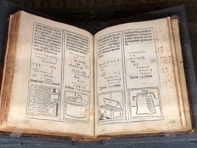Practical maths, from Filippo Calandri’s Arithmetica, printed in Florence in 1491.