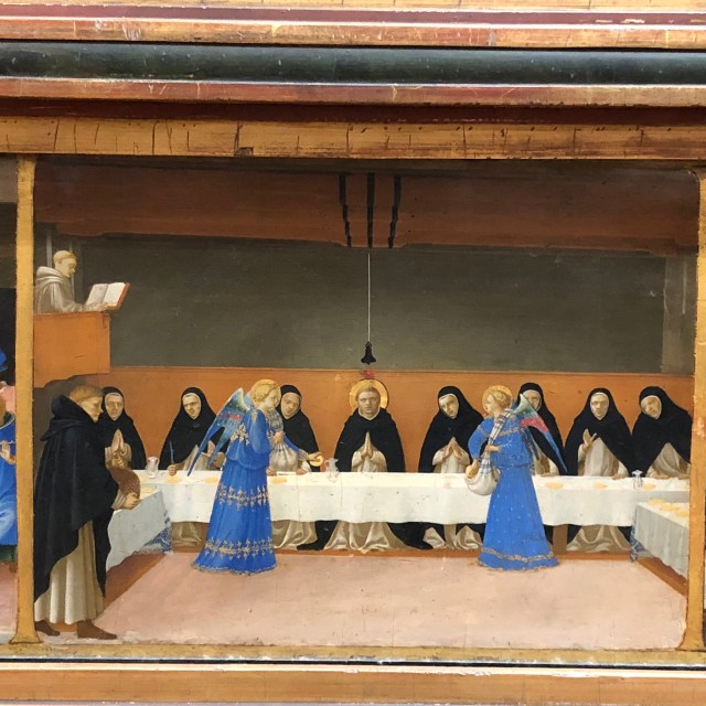 Another predella picture, by Fra Angelico, St Dominic and his companions fed by angels, below the ‘Coronation of the Virgin’ (c. 1430–2), from the monastery of St Dominic, Fiesole; entered the Louvre in 1812.
