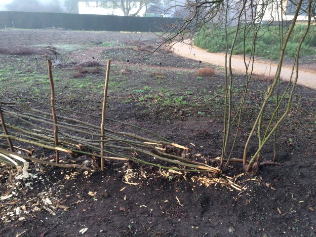 In 2017, I photographed one conifer @CUBotanicGarden once a month. I have to admit that the result was not completely gripping, so I thought that for 2018 I would track the development of the laid hedge there. I failed at the second post, as I don’t appear to have a picture for February – and June, August and September are also apparently absent. This is pretty embarrassing, given that I walk past it at least once a week. (I was getting so worried about memory lapses that I did a couple of those on-line ‘Diagnose your own Alzheimer’s’ tests, and am apparently absolutely fine (assuming I remember the result correctly, of course).)
