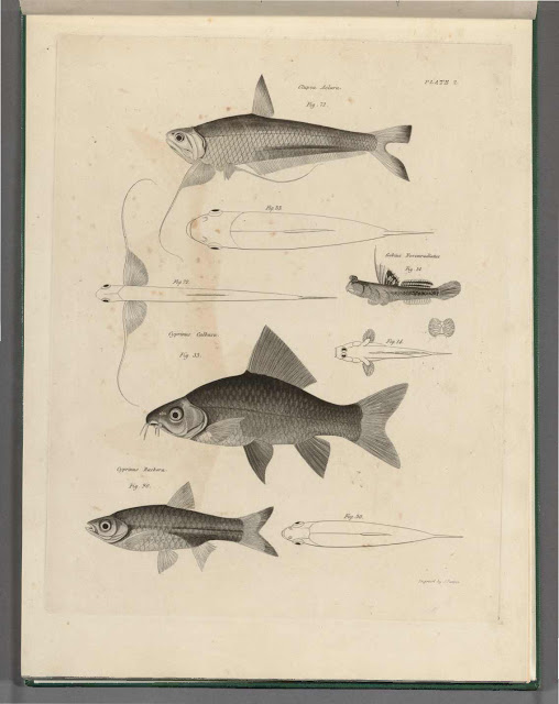 A page of illustrations from another of Buchanan’s publications, An Account of the Fishes Found in the River Ganges and its Branches, etc. (1822).