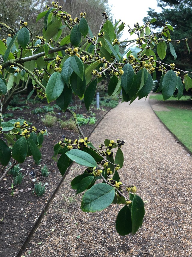 A lot of choice, during this (so far) mild winter. I wondered about Sycopsis chinensis, of which the yellow filaments are currently glowing @CUBotanicGarden, or one of my own winter-flowering clematis, but – not only because it is glorious in its own right, but because of its role as a sentinel at the entrance to the Winter Garden at the Botanics, which celebrates its fortieth anniversary this year – I’m going for Daphne bholua ‘Jacqueline Postill’, possibly the most famous of the daphnes, not only for its flowers but for the unmistakable fragrance which you walk into like an invisible wall, even on the coldest day, as you approach the plant.