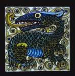 De Morgan’s bold, cheerful and often amusing designs, influenced (both in colour and motif) by Islamic ceramics (one of his lines was ‘Persian ware’) as well as by Morris, are now again hugely popular, and original individual tiles (let alone the bowls and chargers) sell for significant amounts, while there is a lively market in copies.