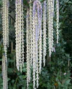 With its ‘winter interest’, Garrya elliptica rapidly became a popular plant in the UK for shrubberies; it can also be trained against a wall.