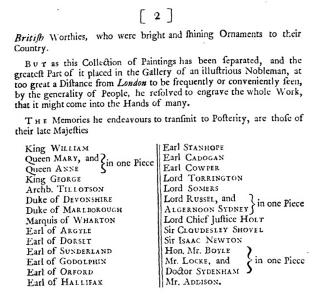 Lord Wharton and Joseph Addison are in the UK Government Art Collection; the first duke of Devonshire at the Barber Institute of Fine Arts, Birmingham; Shovell is loaned to the current exhibition by the National Gallery of Art, Washington; John, Lord Somers (by Canaletto) is at Hinton Ampner (National Trust); the natural philosophers are in Bologna (though there is a subplot of a separate plate representing Boyle created for the Tombeaux). Among those I haven’t so far found are William III and his wife and sister …