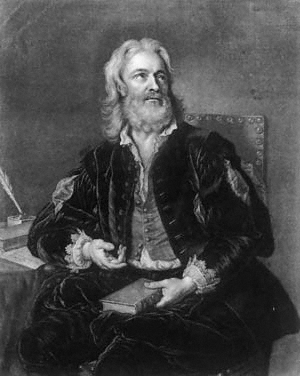 A mezzotint showing Owen Swiny, apparently in an Elizabethan doublet, by John Faber Jr after J.B. van Loo (1752). (Credit: National Portrait Gallery)