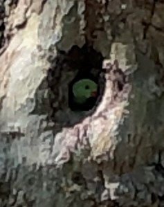 to the hubbub of Commercial Road again, and across to our own relatively peaceful enclave near Stepney churchyard, where, it appears, a parakeet family is indeed being raised in the hole in a plane tree they were inspecting a month or so ago.