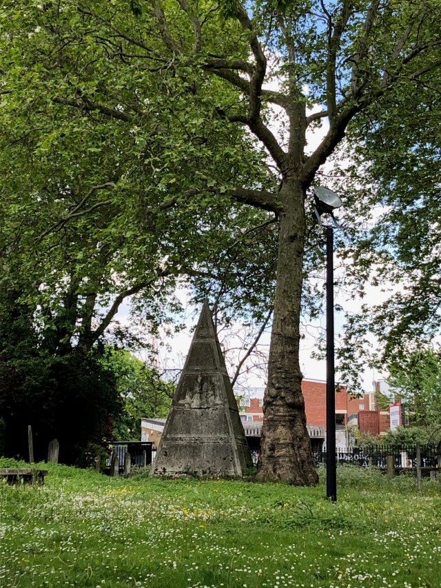 St Anne’s was consecrated in 1730, and is surrounded by a large burial ground where (again, like St George’s), the gravestones have been moved to the walls, leaving only the monumental tombs and the pyramid in situ.