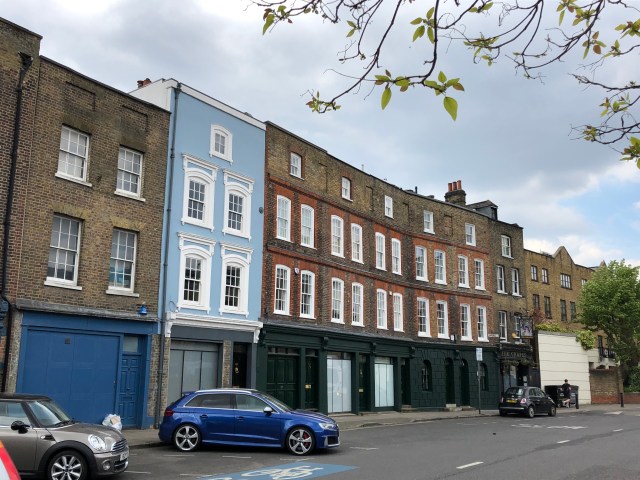 one of the regular exercise sessions was in progress at the bandstand. Parallel with the river is Narrow Street, where some of the wharfside warehouses, now mostly houses and apartments, still keep their original designations.